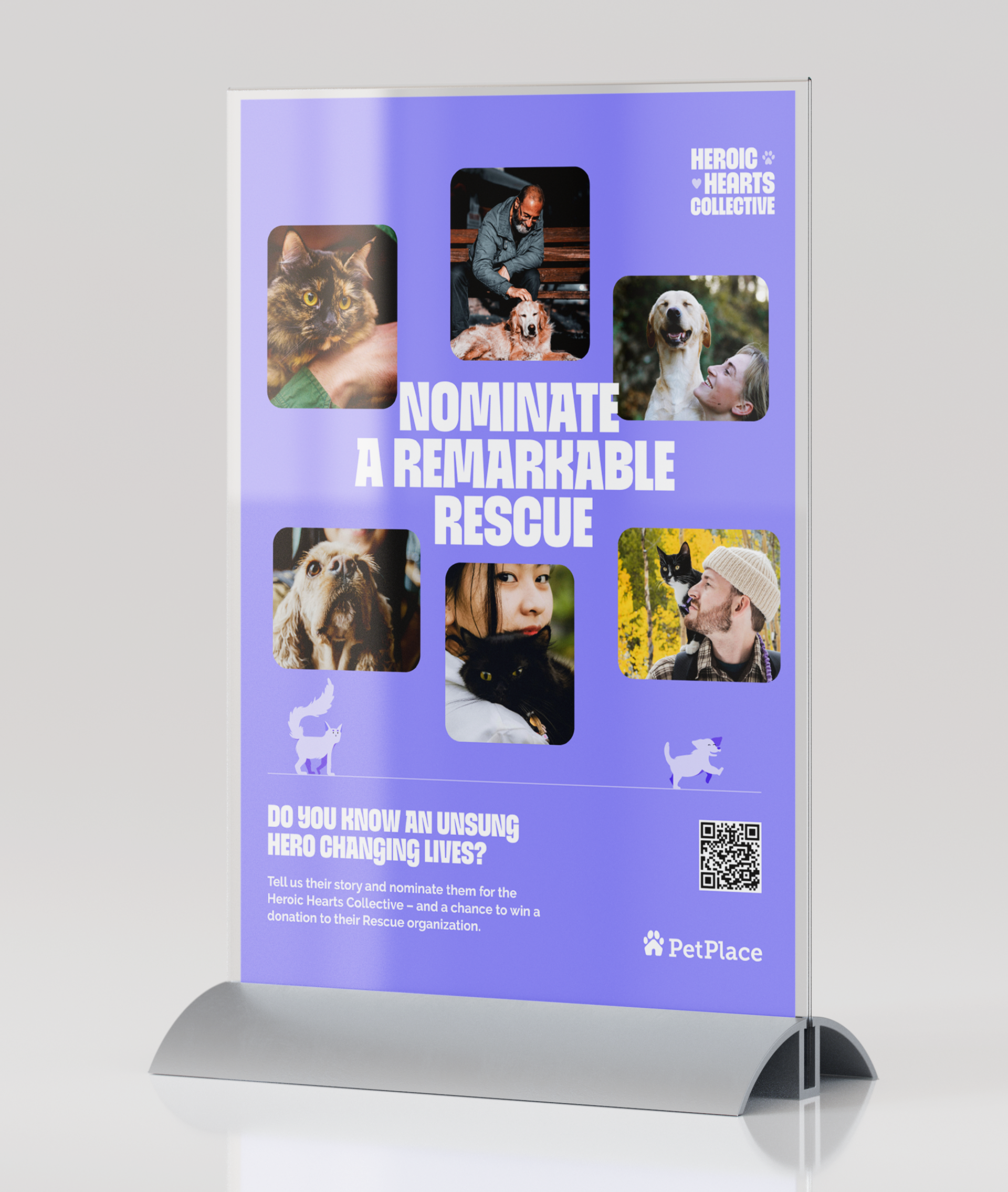 We developed a community-driven campaign that celebrated the unsung heroes of animal rescue. The "Heroic Hearts Collective" invited pet owners, shelters, veterinarians, and adopters to nominate remarkable rescue organizations, leveraging existing relationships and building engagement through user-generated content. We brought the campaign to life across channels, sizing audiences across LinkedIn, Meta, YouTube, display and paid search to reach pet adopters and rescue workers in their world, with sensible spend levels.